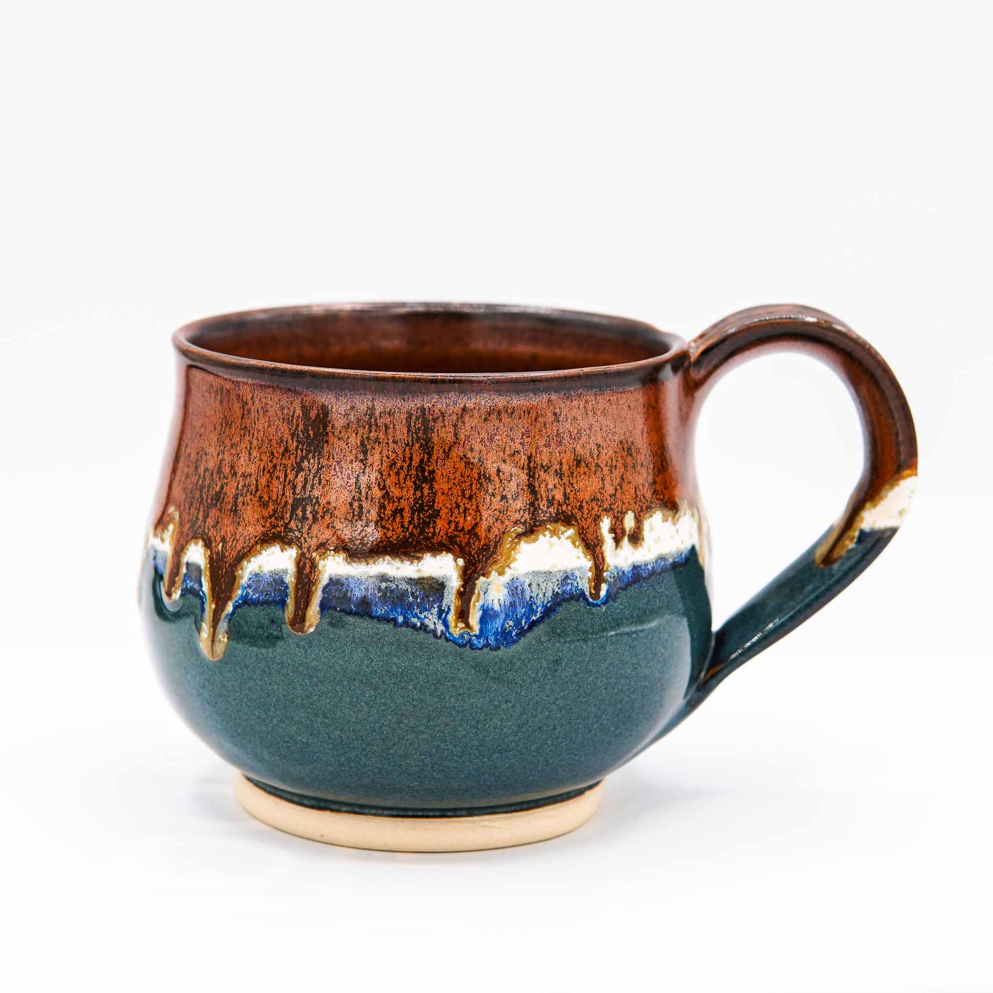Thrown for comfort in the hand. Each mug holds 10-14oz and features flowing glazes inspired by the West Coast. Perfect for morning coffee or afternoon tea.