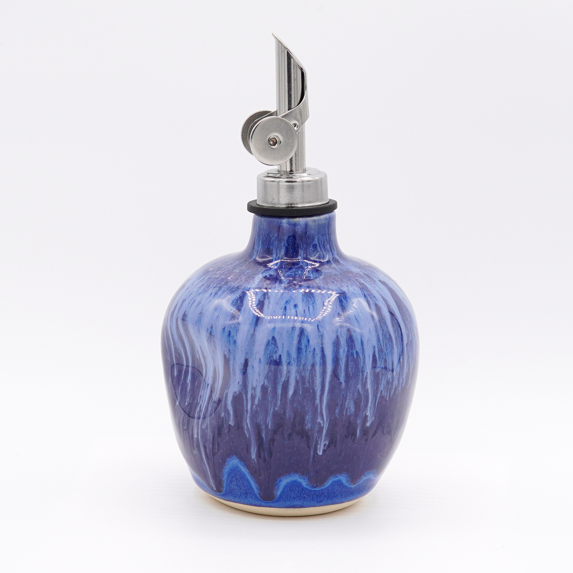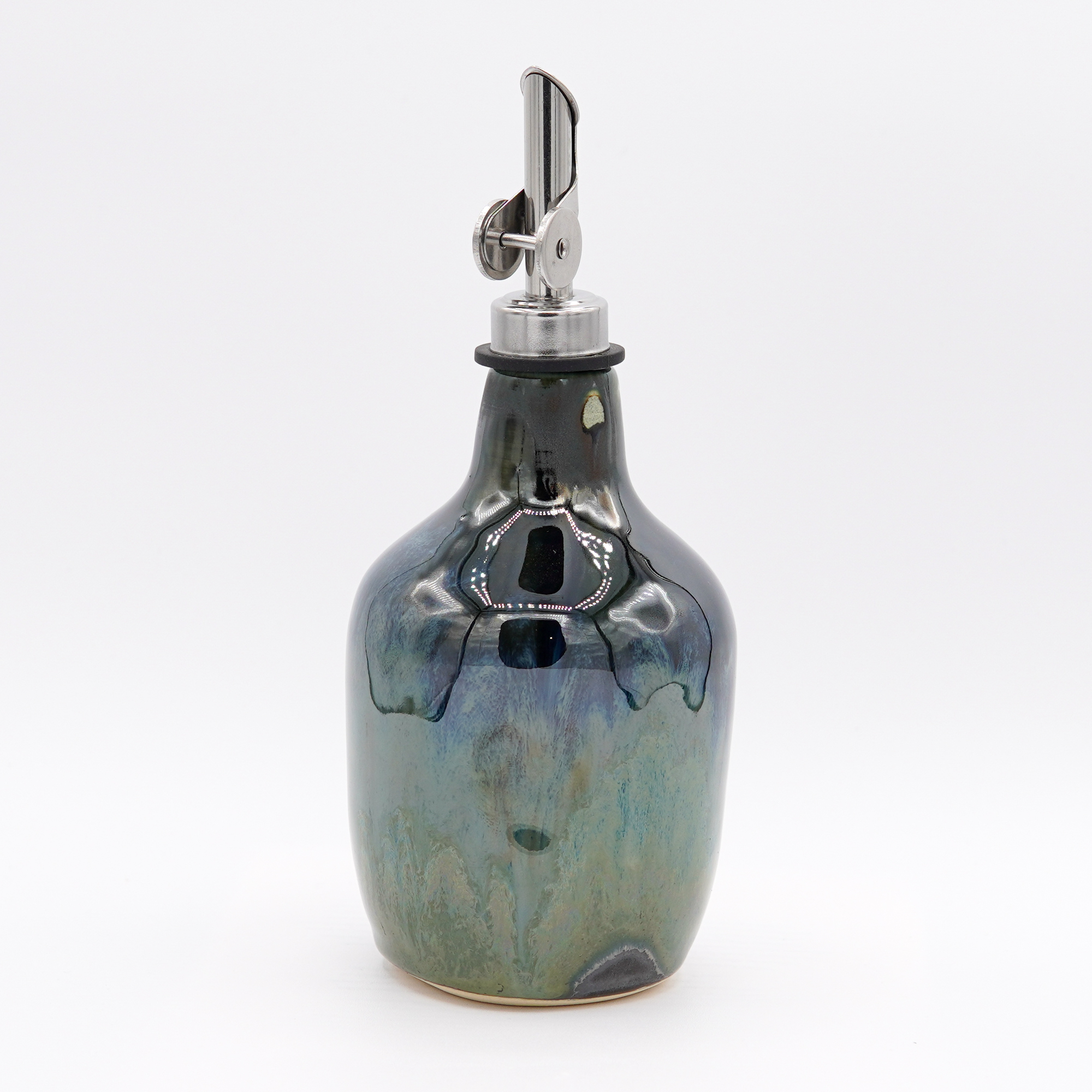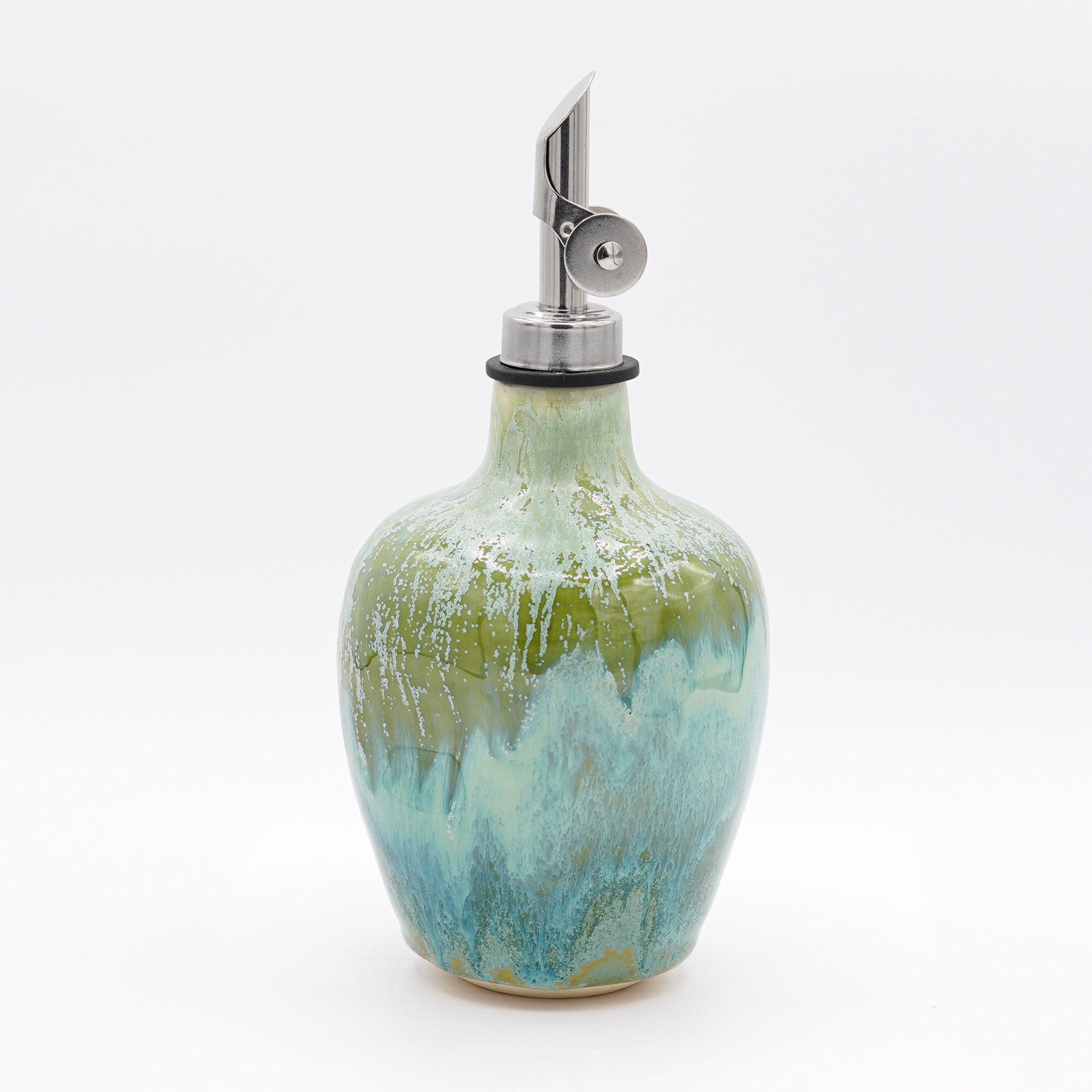 Small pouring vessels for olive oil, soy sauce, dressings, or maple syrup. Each comes with a cork stopper. Designed for controlled pouring and easy storage.